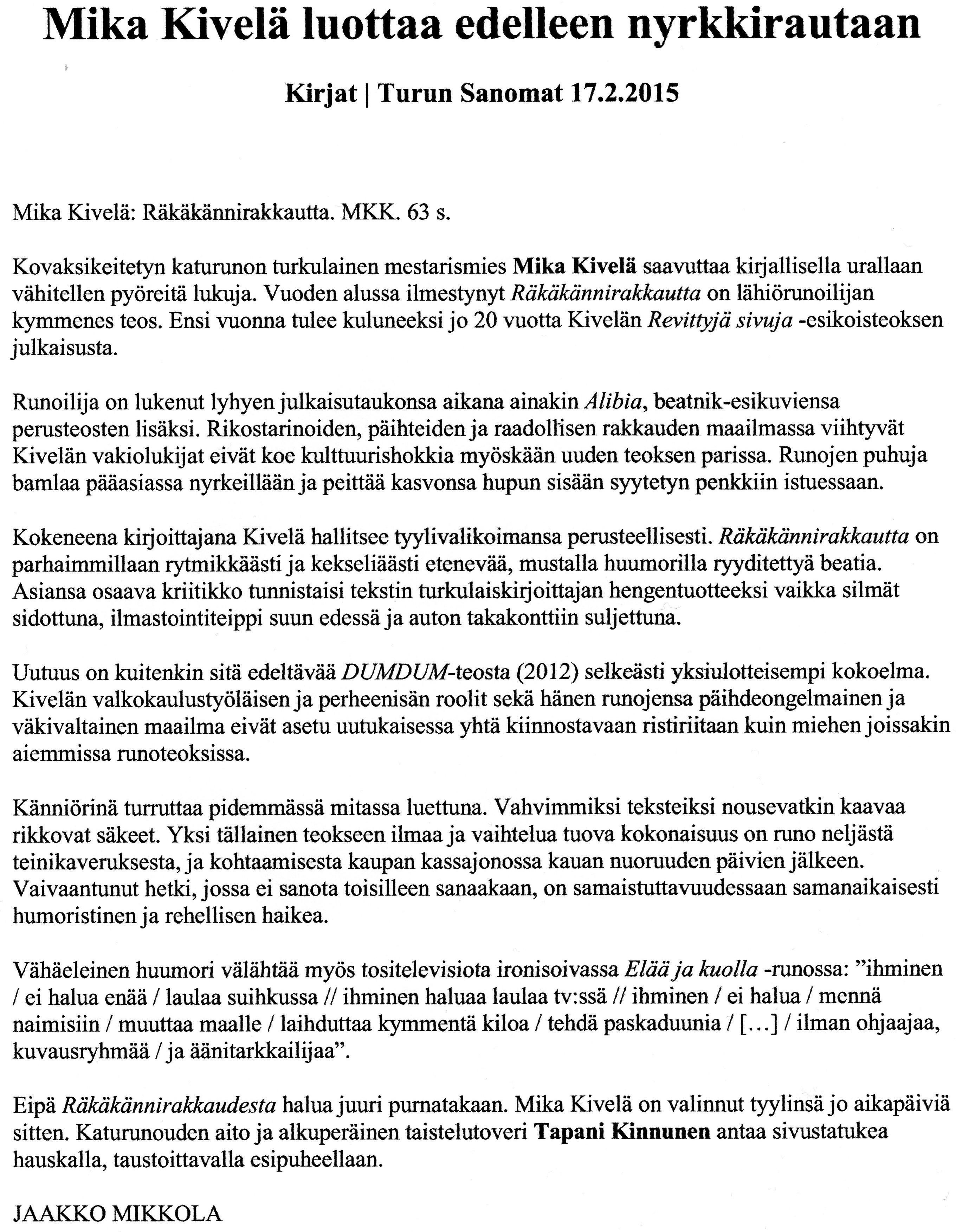 Turun Sanomat 17.2.2015 Posted on 22.2.2015 by caution2 Jaa tämä: Click to share on X(Avautuu uudessa ikkunassa) X Jaa Facebookissa(Avautuu uudessa ikkunassa) Facebook Tykkää Lataa...