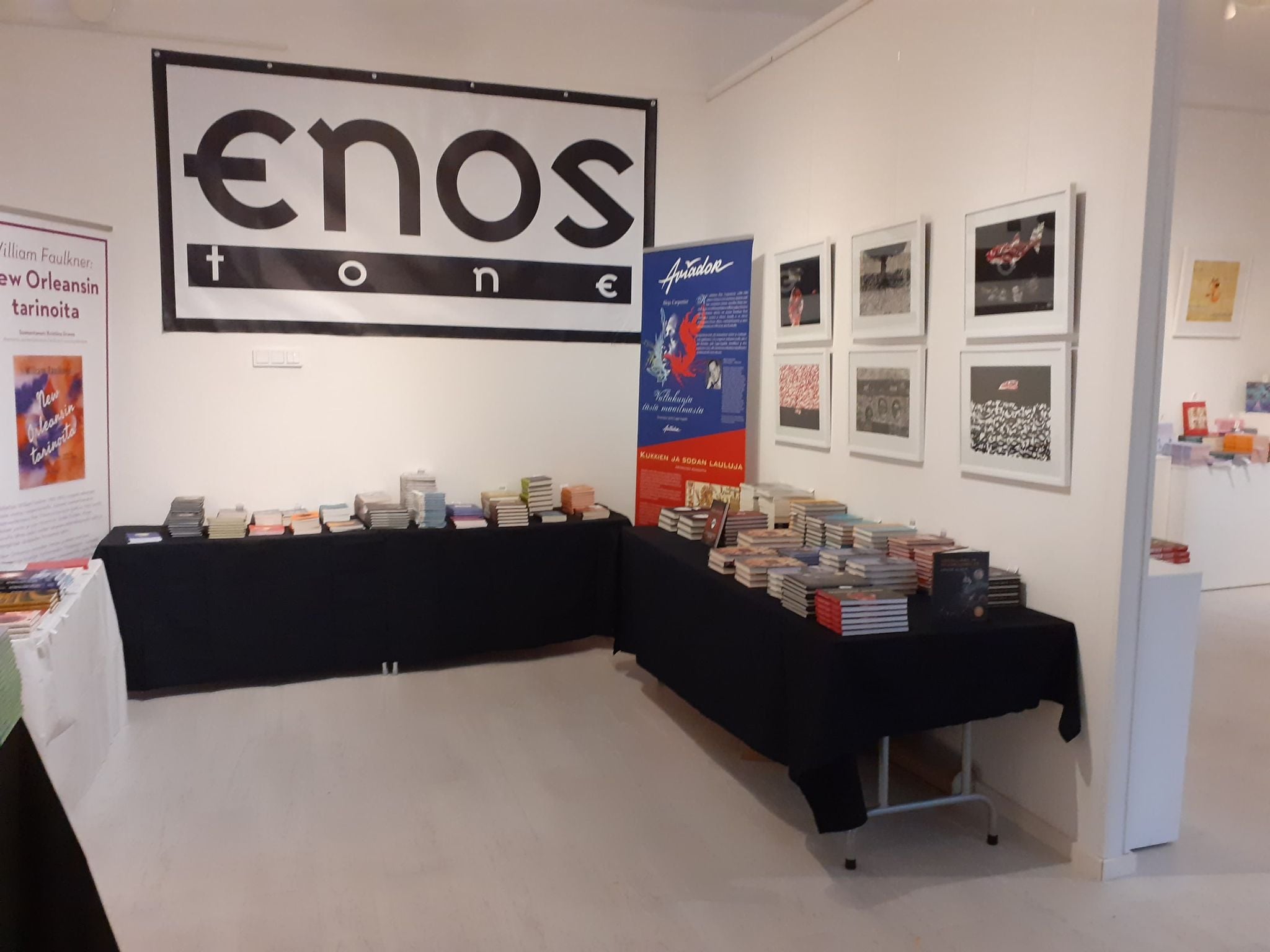 Kirjoja ja kuvataidetta! Enostone kustannuksella on joulun ajan pop-up liike Helsingin Punavuoressa, Galleria Albert IX:ssä Albertinkadun ja Merimiehenkadun risteyksessä. Kirjojen lisäksi tarjolla Muhaned Durubin ja Nadia Tawfikin taidetta ja sekä Aviador kustannuksen ja Arktisen Banaanin kirjoja.