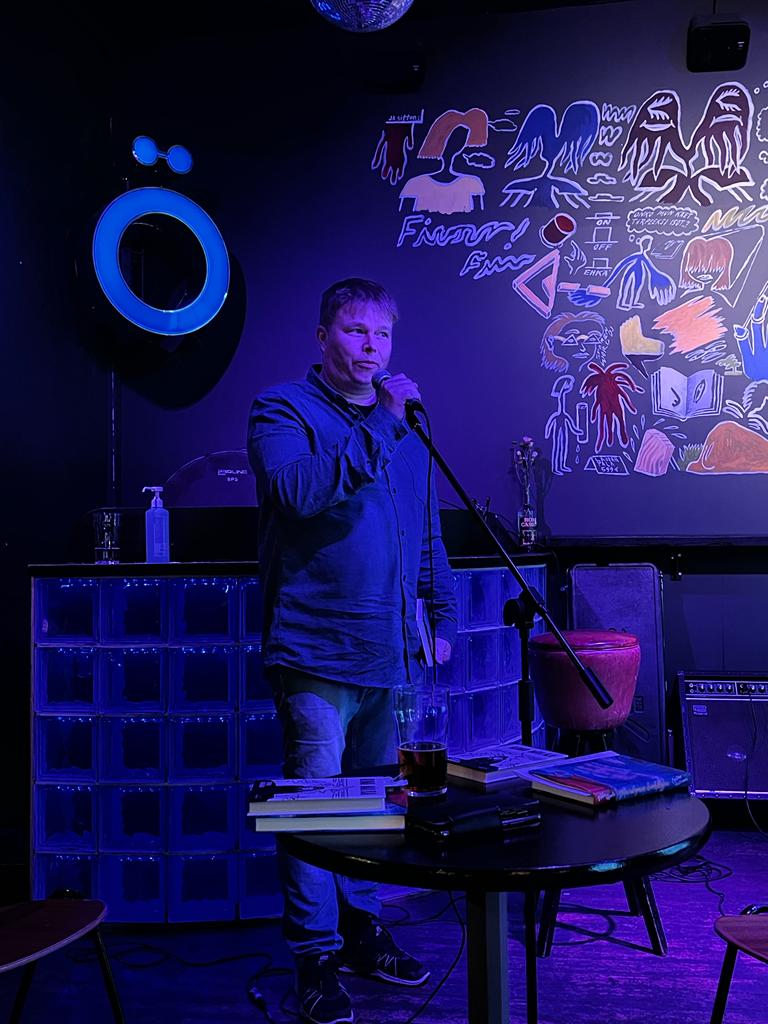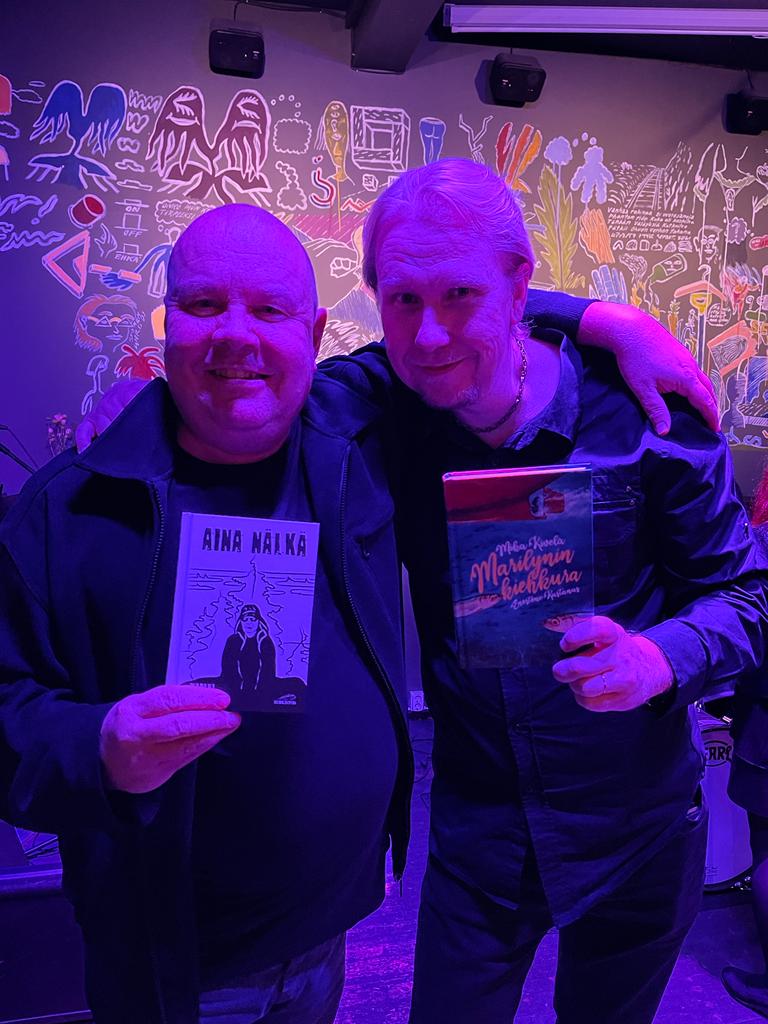Enostone kustannuksen Kalle Niinikangas lausui alkusanat, kirjailijat haastattelivat toisiaan, Hurjan pojan koti veti loistokeikan ja meininki oli sen mukaista.