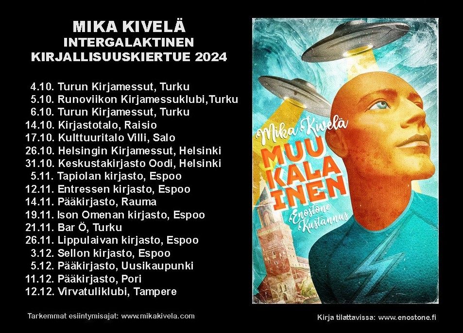 Lähden tien päälle juhlistamaan Muukalainen-romaanin ilmestymistä.