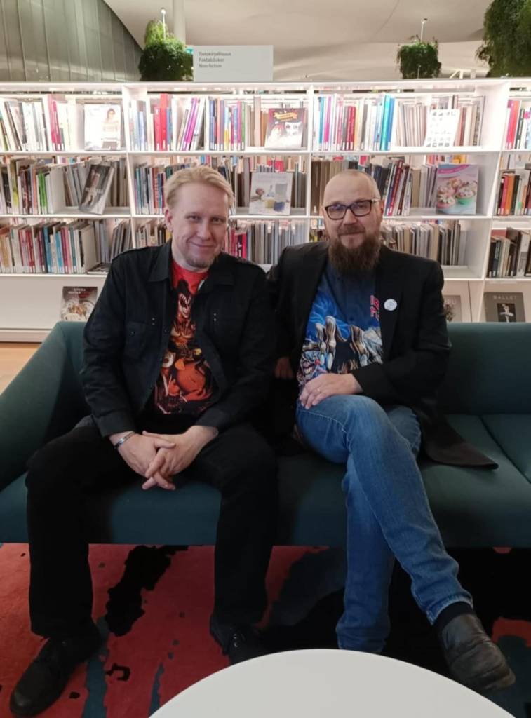 Janne Nevala & Mika Kivelä, rokkikirjailijat Oulun Muusajuhlilla 2019. Kuva: Eija Nevala